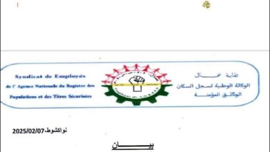 أصدرت نقابة عمال الوكالة الوطنية لسجل السكان والوثائق المؤمنة، اليوم السبت 7 فبراير 2025، بياناً عبّرت فيه عن قلقها البالغ…